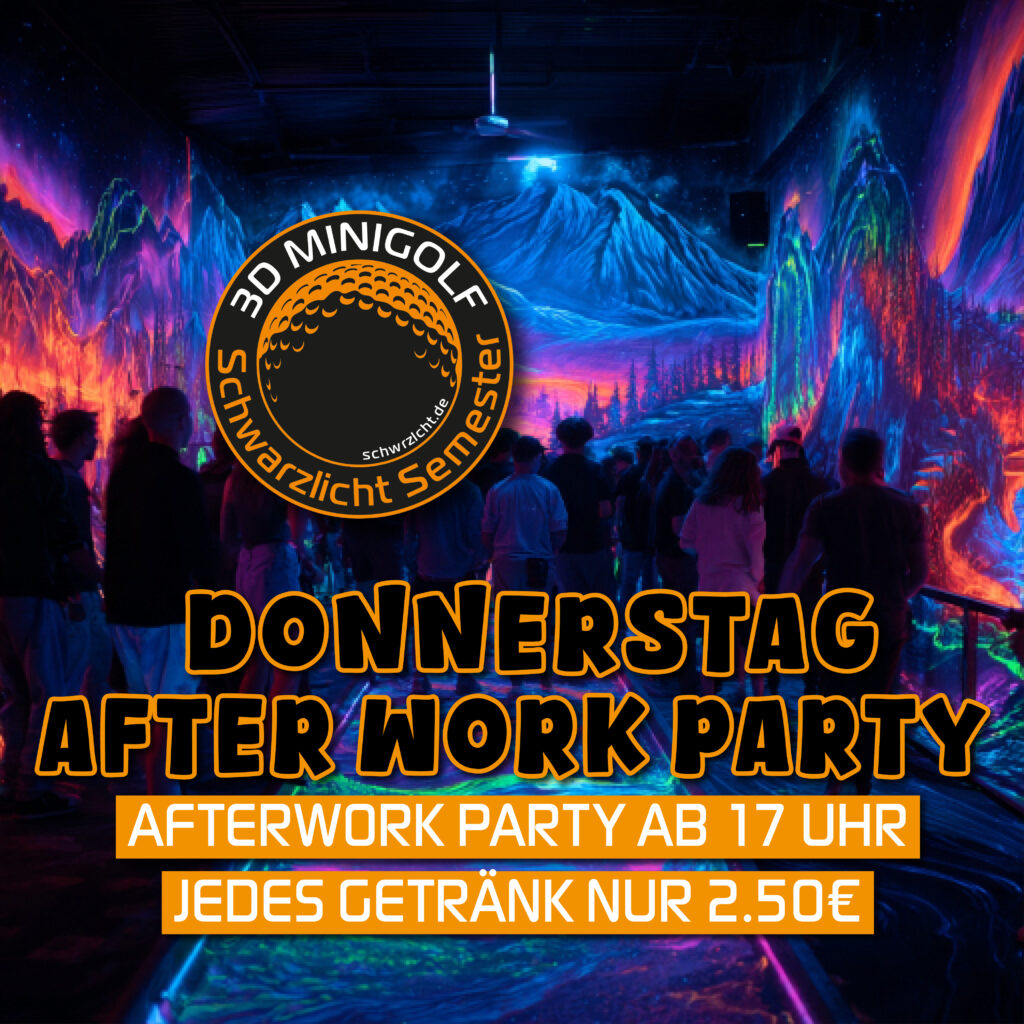 Verpasse nicht die Gelegenheit, nach Feierabend Spaß zu haben und neue Energie zu tanken. Buche jetzt deine After-Work-Session und freue dich auf unvergessliche Momente im Schwarzlicht-Minigolf!